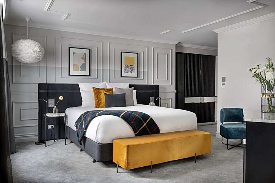 The Mason Suite is inspired by the heritage of Scottish settlers. These boutique rooms feature a separate lounge area, high ceilings and sweeping views of Princes Street. Also included is a 65 inch Smart TV, a digital compendium and complimentary high speed WiFi. A selection of Pure Leaf Single Origin teas and a capsule coffee machine with a range of coffee blends are provided. Complimentary bathroom toiletries are also included. The hotel is a member of the Weka plastic recycling program.